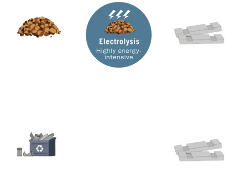 By contrast, manufacturing aluminum from recycled material generates 97% fewer CO2 emissions*1 than using primary raw materials.
