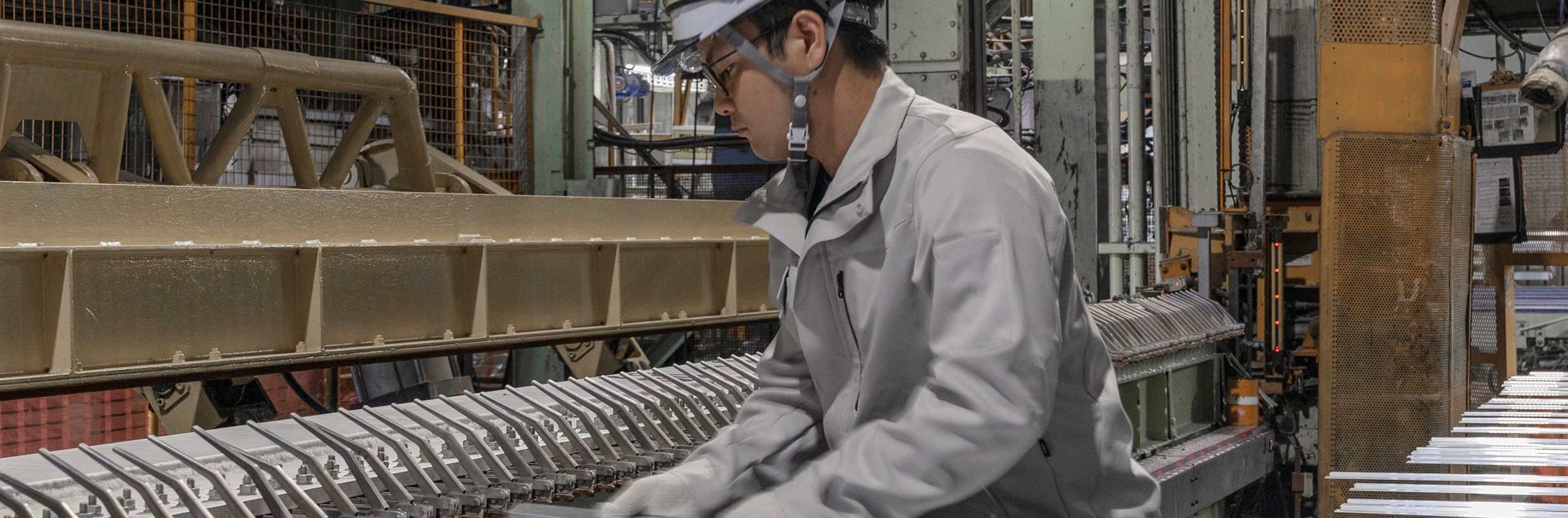 LIXIL has established its own material supply routes to secure a stable supply of aluminum scrap, which is processed at in-house melting facilities. The molten metal is purified, then poured into circular molds and cooled to form cylindrical billets. These billets are loaded together with dies into an extrusion press, where high pressure is applied to create aluminum extrusions. Finally, the extrusions undergo heat treatment to ensure they retain the required strength.